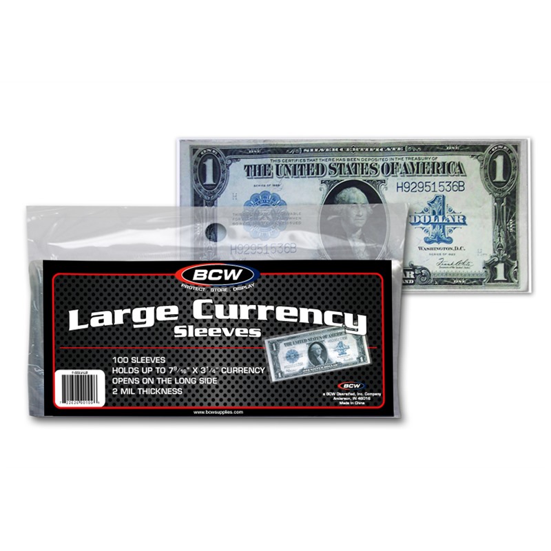 100 BCW 2-mil Large Currency Sleeves 7-7/16" x 3-1/4"