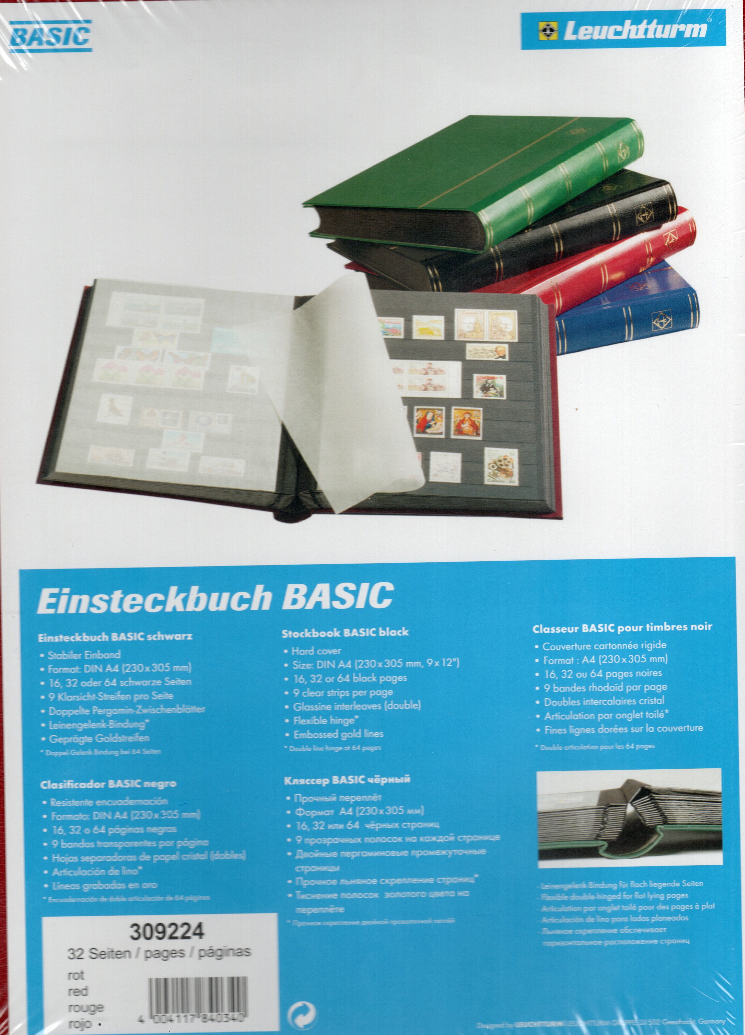Prinz 32 WHITE Page Stockbook Red Cover 10 Glassine Strips & Interleaves 9x12