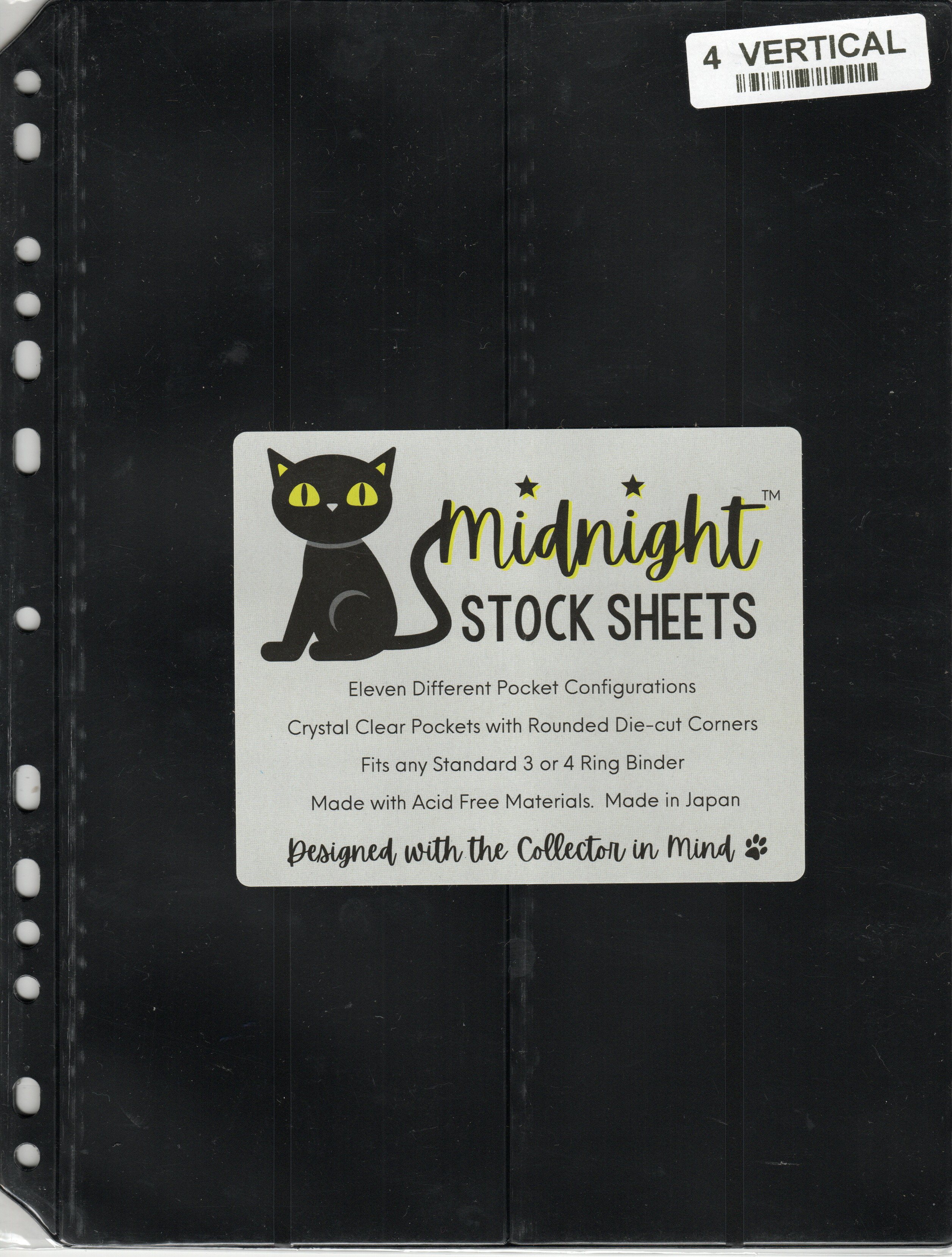 Midnight Stock Sheets 4-Vertical Row 2-Sided Black (Vario-Style) Pkg. 5 MID4VS