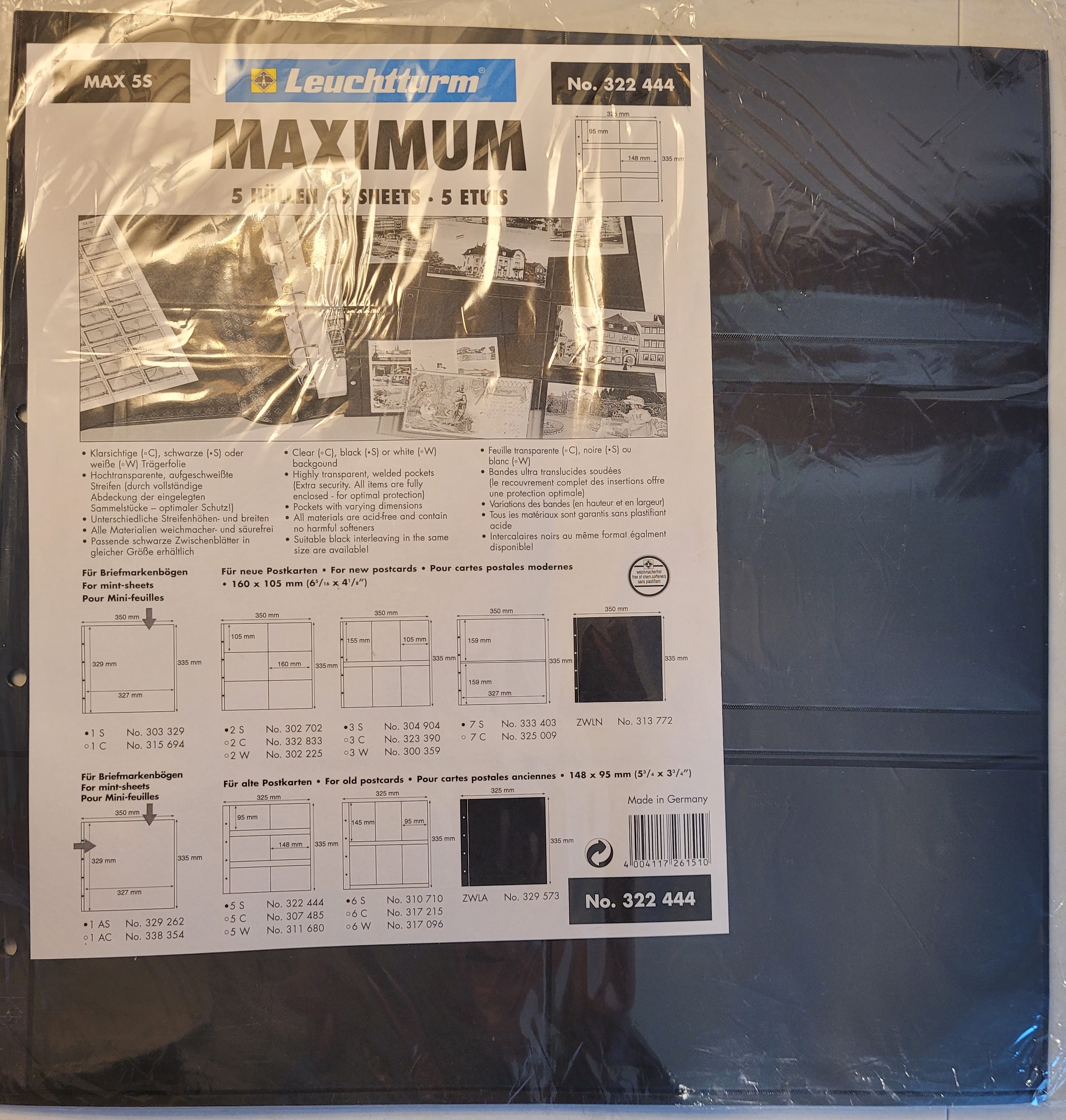 MAXIMUM Stock Sheets MAX5S BLACK 6-pocket for Older Postcards Pkg. 5